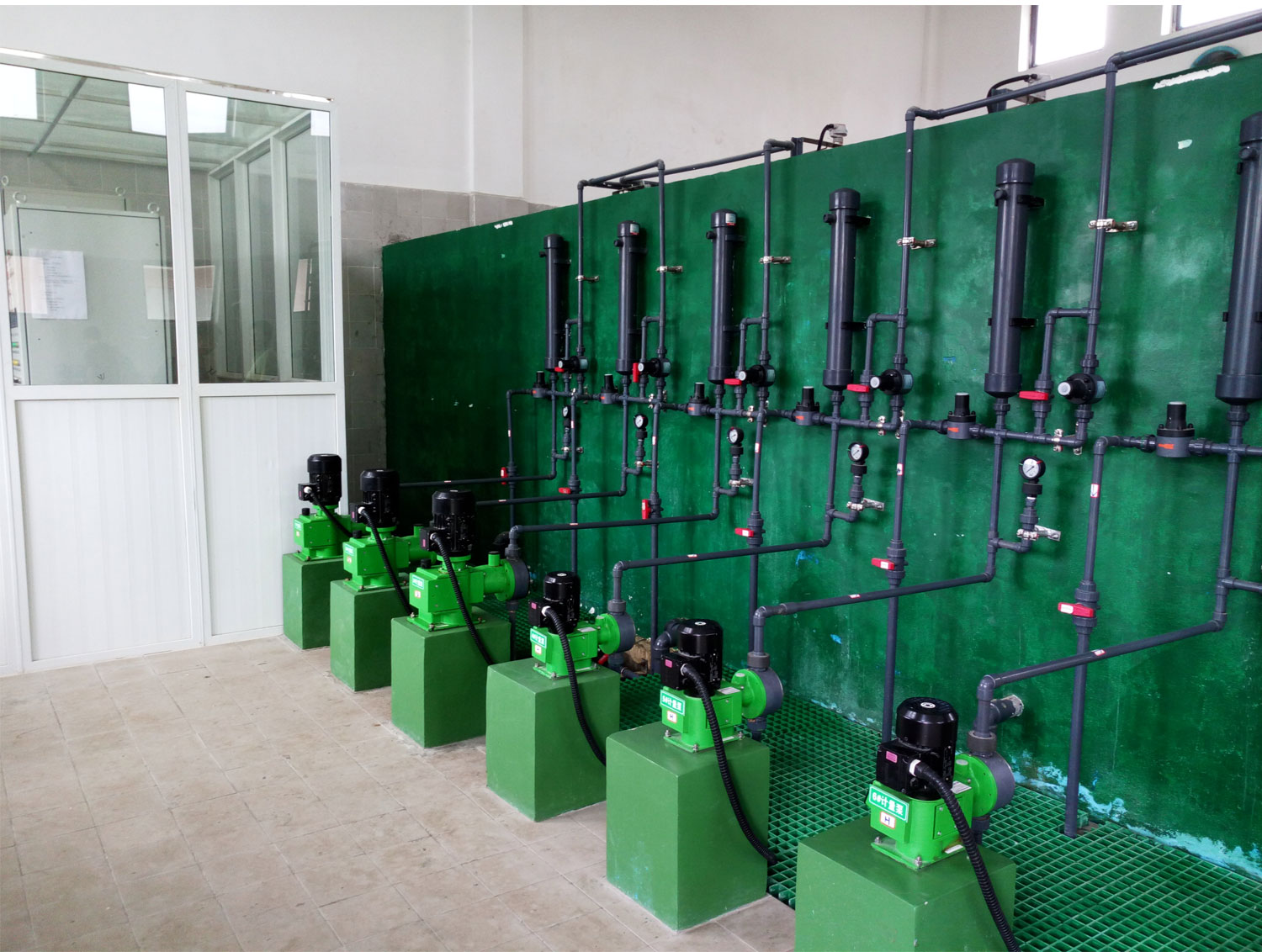 該加藥系統(tǒng)主要是由溶液箱、儲(chǔ)備箱、攪拌器、計(jì)量泵、液位計(jì)、控制柜、管路、閥門、安全閥、止回閥、阻尼器、壓力表、過濾器等組成(可根據(jù)用戶的實(shí)際需要配置)。