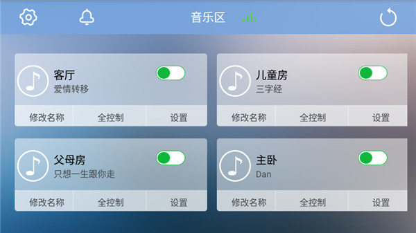 除了聽音樂,各項智能設備的控制也不能少。空調、窗簾、燈光、家庭影音……所有操作集中至一個屏內,打開、關閉、功能調節一鍵搞定,再也不用滿屋找遙控器。