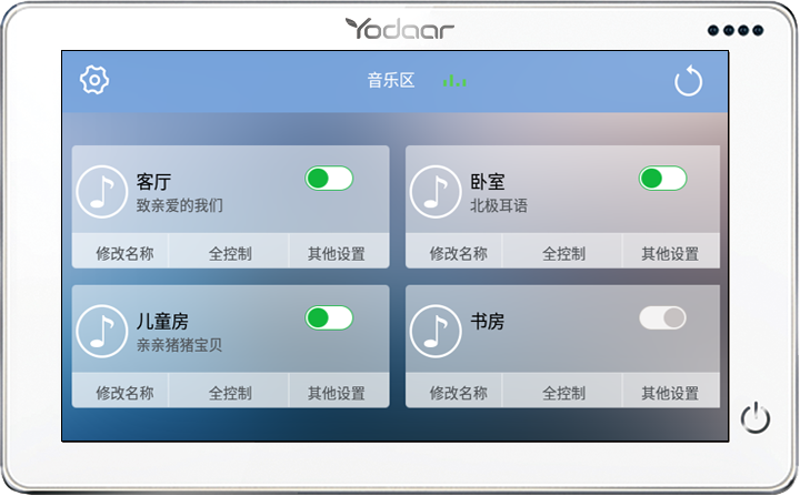 (支持獨(dú)立控制不同房間的開(kāi)關(guān)及音樂(lè)選擇)