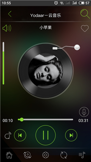 打開軟件后點擊音樂,就可以通過手機進行各項操作。除了顯示方式有所差別外,手機界面中所有的音樂與設置和控制面板完全一樣,可以設置播放器模式、選擇不同的音源接入、在線搜歌選歌……不要太好用~