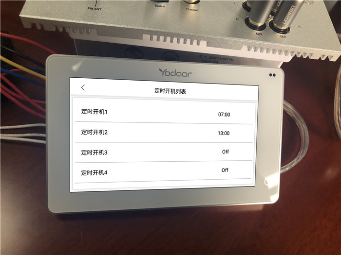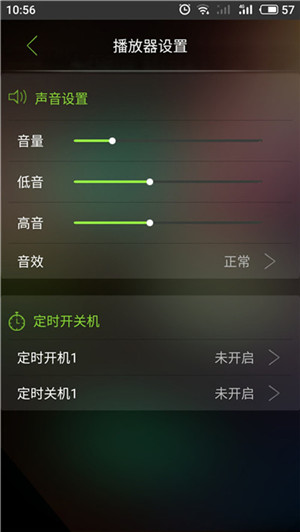 背光時間、時區、時間這些和平常使用的手機基礎功能一樣,就不多說了,模式和高低音里面可以設置不同的音效風格,比較個性化。定時開機與關機中都提供了四個選項,可以分別設置早中晚不同時間段的開關機時間,早上可以定時設置起床音樂當鬧鈴,晚上伴著音樂入睡自動關機,非常方便。