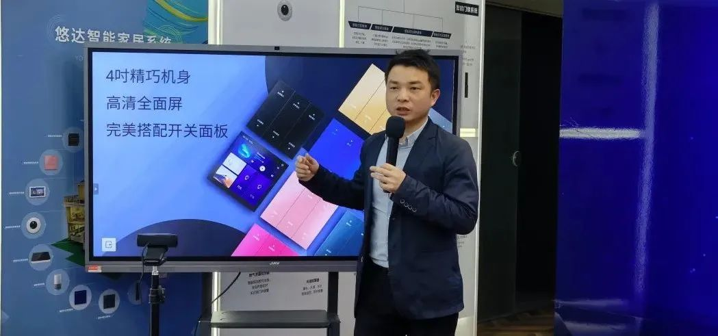 除了揭曉年度優秀代理商,一直備受關注的新品也終于和大家見面。今年,悠達推出了4吋全面屏、5吋全面屏、WiFi智能家居等多款重磅新品。市場總監柳湘林針對新品進行了詳細介紹,不同產品各具特色,功能十分強大。4吋全面屏完美搭配開關面板,系統純凈穩定,具有控制背景音樂、智能家居、聯動云門鈴等多重功能。WiFi智能家居徹底擺脫開槽布線麻煩,性價比超高,尤其適合小戶型使用。5吋屏通過UI升級,界面更加精致簡潔。
