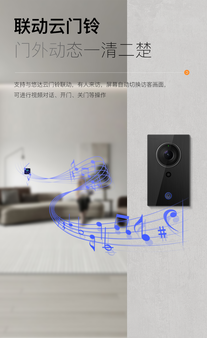 此外,它還支持wifi拓展、聯動云門鈴、實時呼叫對講等功能,升級后更可作為智能家居中控屏,更多優點,一睹為快↓