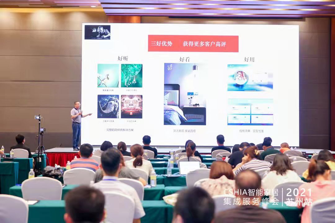 9月16日,2021智能家居集成服務峰會蘇州站在蘇州日航酒店舉行。本次服務峰會以蘇州為中心,全面匯聚了長三角地區智能家居集成服務力量,通過全屋智能、模式創新、產品創新等多個維度的分享交流,為行業帶來了更多感悟與思考。悠達副總經理吳天舒先生作為特邀嘉賓,進行了以“背景音樂的智能創新與拓展”為主題的精彩演講。