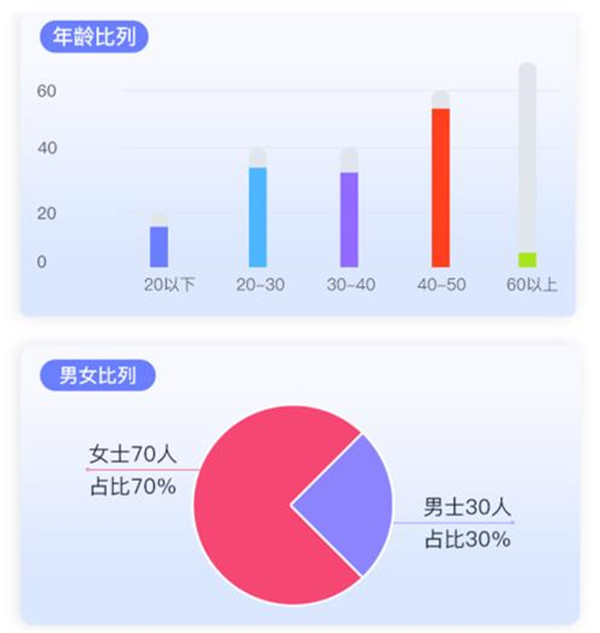 獲悉門店客流只是基本操作,知道門店的主要消費群體才是后續營銷的重點。因而在人流統計的基礎上,系統還會進一步識別顧客性別、年齡段、來訪量等不同屬性,通過多角度的圖表呈現,門店的消費者畫像即清晰可見。根據目標客群,運營者就能合理調整營銷思路,比如,當門店的消費群體主要為男性時,就可有針對性地優化商品結構,更好迎合受眾需求。