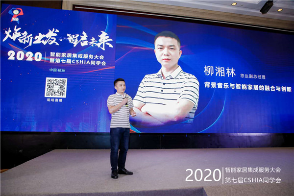 7月23日,2020智能家居集成服務大會暨第七屆CSHIA同學會在杭州三立開元名都大酒店成功舉行,來自不同智能家居品牌與一線集成服務商的代表匯聚一堂,圍繞行業(yè)熱點議題展開了熱烈討論。作為大會特邀嘉賓之一,悠達副總經(jīng)理柳湘林帶來了“背景音樂與智能家居的融合與創(chuàng)新”的主題演講。