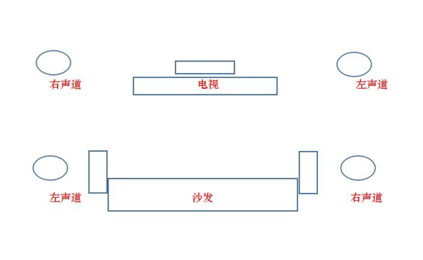 Tips:如果房間面積較大(如很多人家中都是客餐廳一體),建議用4只揚聲器安裝定位,安裝時確保對角為同一聲道,以保證在該區域的十字線上都能聽到最佳的立體聲音。