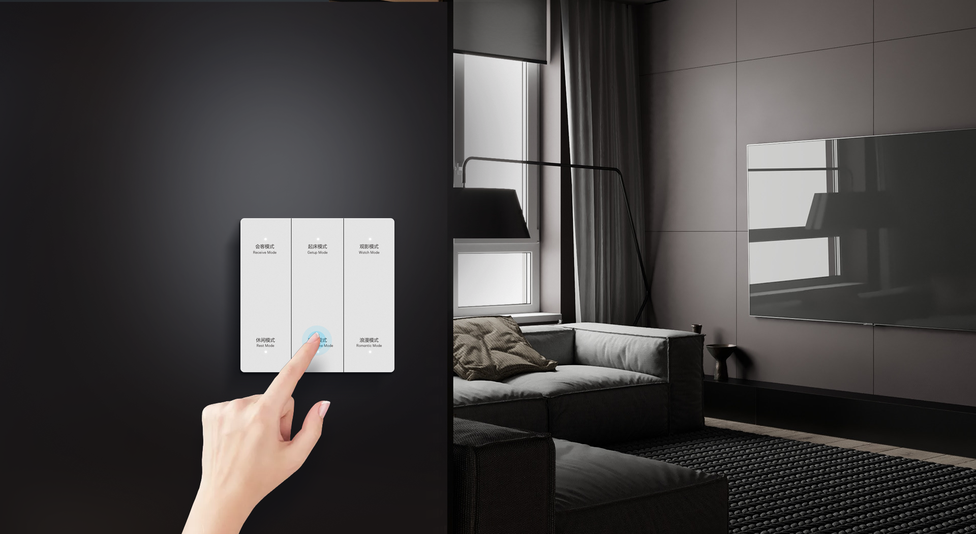 比如定位中高端的純金屬智能開關面板,從設計到開模均為自主研發,經久耐用不褪色,采用進口16A歐姆龍繼電器和紅寶石電容,比同類產品功率更大,使用壽命更長。另外,研發團隊還優化了面板的射頻性能,有效解決了金屬面板無線信號不穩定的問題。用戶通過手機app就能編輯設備和場景,開關面板、調光調色面板,都可作為雙控及場景面板使用,實現一塊面板多種用途。