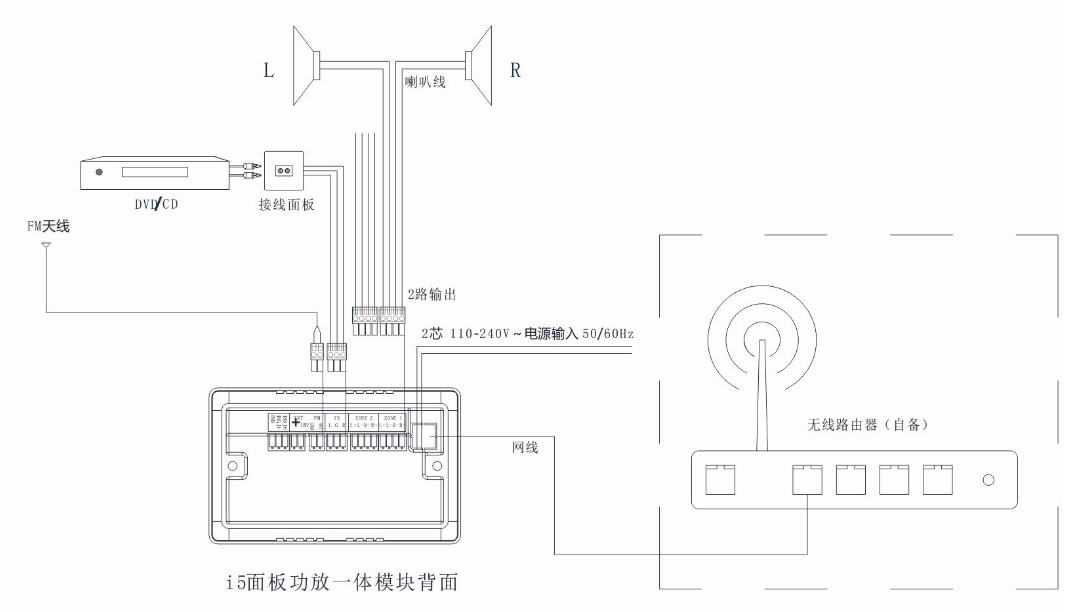 5吋觸屏面板與功放結合,美觀大方操作方便